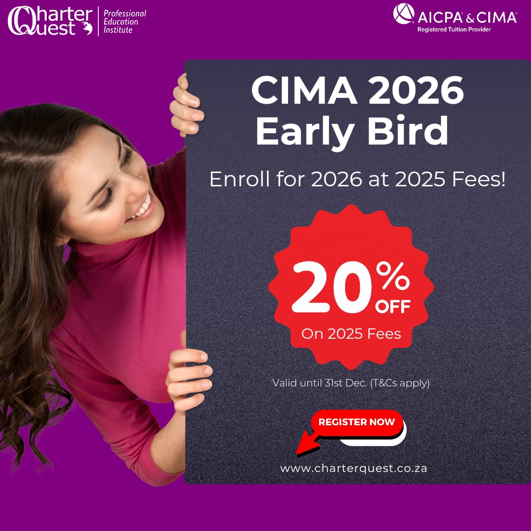 Straight from matric or university, over 2-4 years, you can “Become Your Vision: A Chartered Global Management Accountant” (CGMA) and be invited to membership of South Africa’s and the world’s largest, most prestigious and sought-after professional body of Management Accountants -the Chartered Institute of Management Accountants (CIMA). What’s more? With an NQF L7 qualification, you can convert to CA(SA) whilst keeping your CGMA designation by meeting the terms of the SAICA-CIMA Membership Pathway Agreement (MPA).